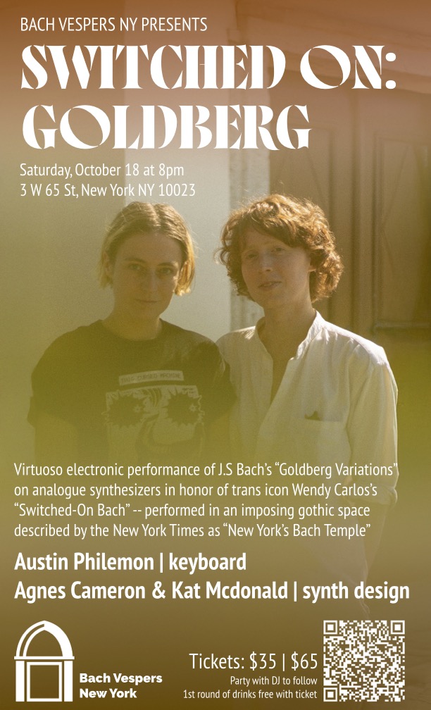 Alongside, Agnes Cameron and Austin Philemon, I'll be performing the Goldberg Variations, in tribute to Wendy Carlos.